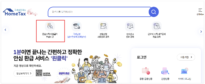 홈택스 메인화면에서 ‘원클릭 환급신고’ 버튼만 찾으면, 진짜로 1분 만에 끝납니다.