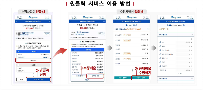 홈택스에서 ‘원클릭 환급신청’을 하려면 정말 간단한 4단계만 거치면 됩니다.