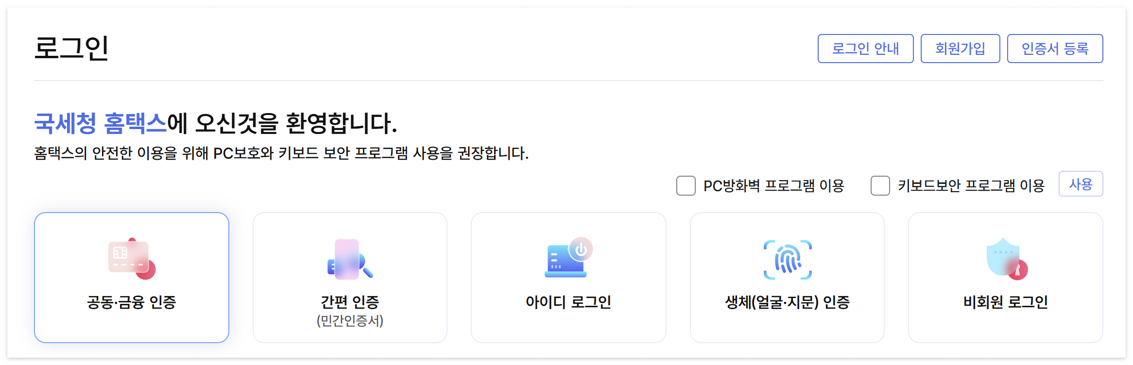 ▶ 공동인증서 또는 간편인증(카카오톡, 네이버 등)으로 로그인