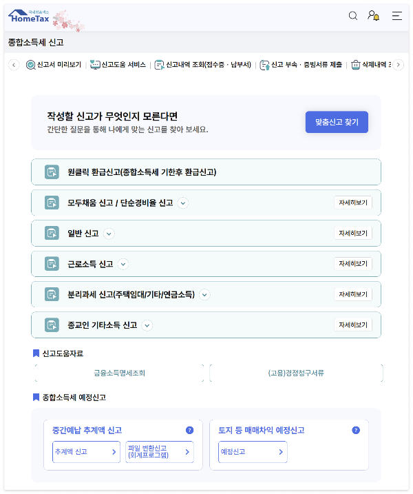 - 종합소득세: 근로 외 수입(사업, 이자, 배당, 임대 등)도 합산 신고