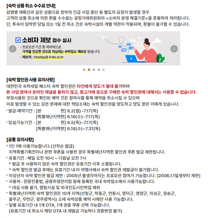 - 지난 2~3월 숙박세일페스타 행사에 참여한 이용자도 이번 행사에 다시 참여할 수 있으나,